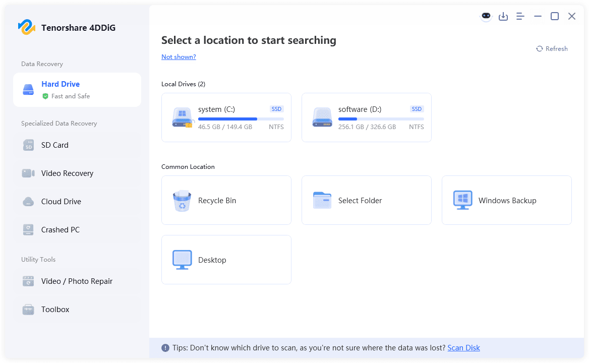 One of the easiest and most dependable ways to recover deleted files from Recycle Bin after empty is by using a professional data recovery tool. We recommend Tenorshare 4DDiG for its intuitive interface and high recovery success rate. Here’s what makes it a strong choice: