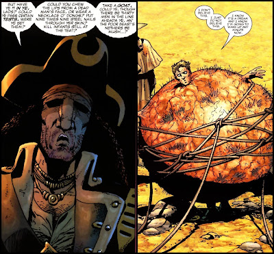 Par the course for Ennis, all of the oddballs are on full display. The main villain, Castenado, is a blind amputee with a gift for gruesome gab. A member of Pilgrim’s party named Dirk gets impregnated by a pit monster, rendering him less than a personable pustule. Nearly two decades ago I’m sure all of this gave me a good chuckle. I was 21 years old and heavily into Bukowski and booze. Now, however I kind of meh at it. Not that all of the gags aren’t funny or could only be considered such, especially by an adolescent. I bet this will rib-tickle a bunch of folks but it just not as clever as I thought it was. Have I matured? Are dad jokes my new bread and butter? Probably.