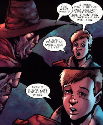 The narrative is told by a little boy named Billy Shepard via the pages torn from his diary. They tell of how the Earth suffered a cataclysm called “The Burn” that has destroyed most of the surface areas and led the oceans to dry up. Billy along with his family and a wandering caravan found themselves under assault by pirates when a righteous stranger arrived in time to save them. When asked who he is, surrounded by fire and death, the mystery man raises his head revealing the shape of a cross seared into his face and responds “Just A Pilgrim.”